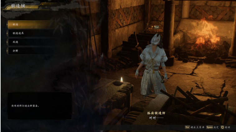 在此处的狐面锻造师处可以使用铁匠铺的功能。