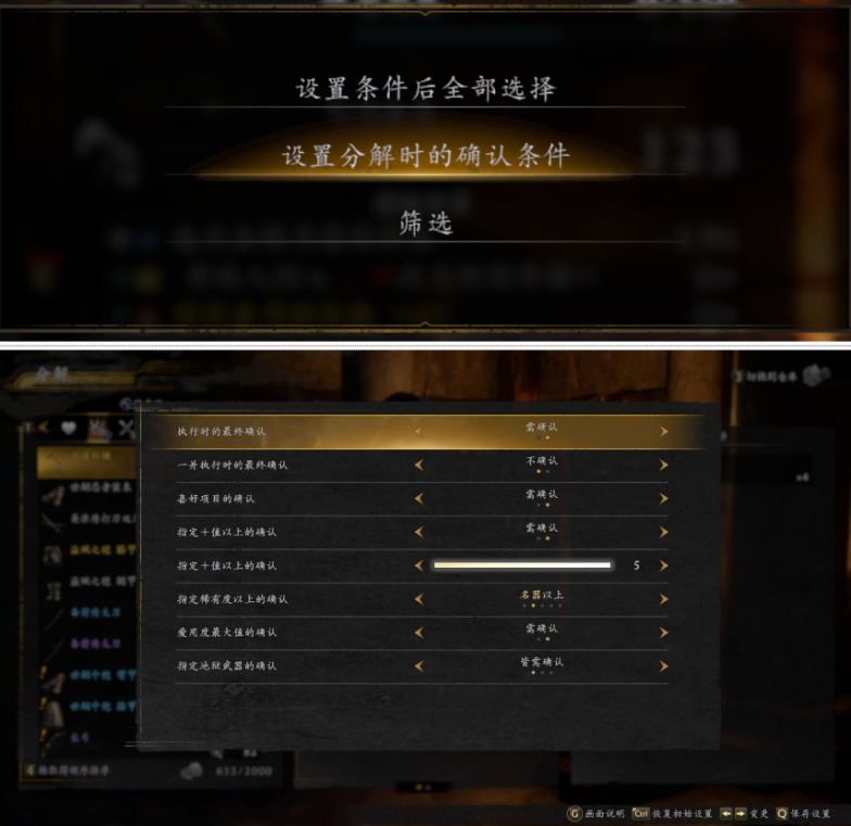 三代仍然可以使用自定义筛选条件筛选想要分解的材料,使用菜单键进行自定义筛选和选择即可。当然也可以进行一键全选和单个点选。