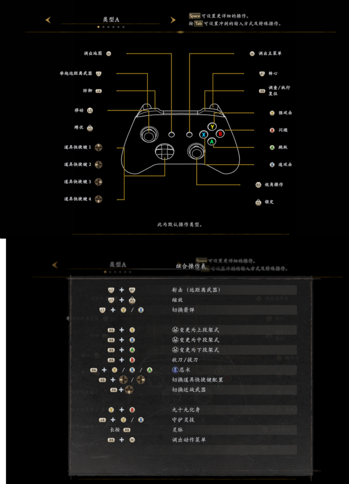 游戏提供了六种基本的键位组合,如果想要修改为防御键派生也需要在这里进行。