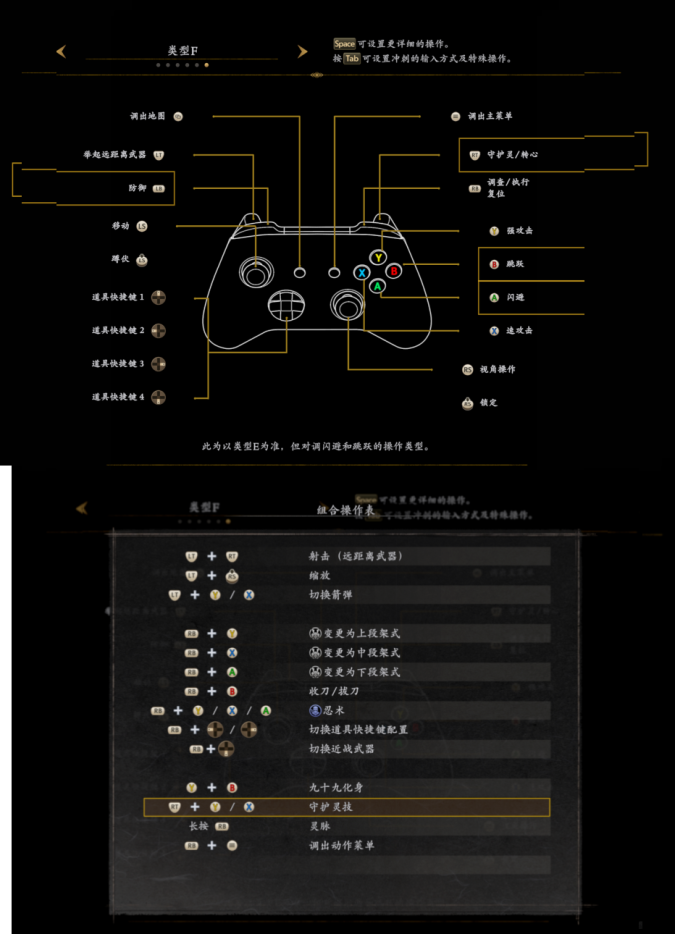 类型E:模仿《仁王2》的操作类型,守护灵技与反击用组合键位发动。